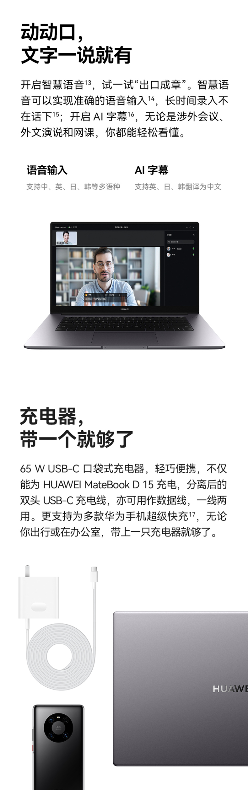 华为/HUAWEI MateBook D15 2022款 11代英特尔酷睿处理器16GB+512GB锐炬显卡笔记本电脑护眼屏