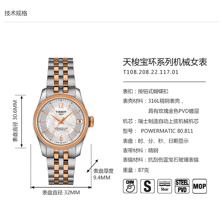天梭TISSOT-宝环系列 自动机械女表